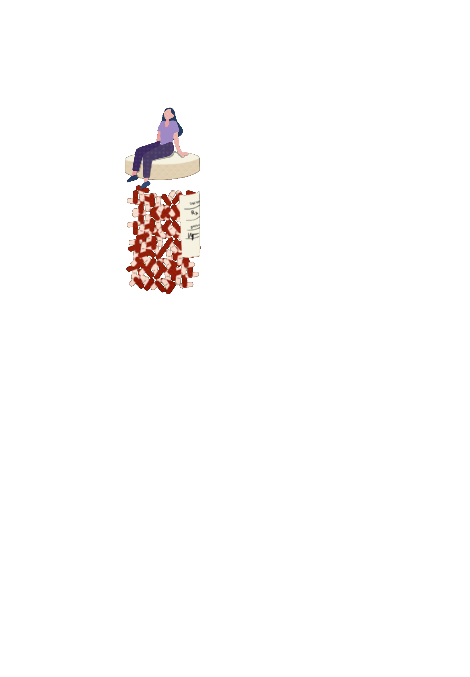 1.Hands appears around her, each holding a struggle the woman faces that’s invisible to someone on the outside: an inhaler, pill bottles, the weight of depression, a figure in pain.